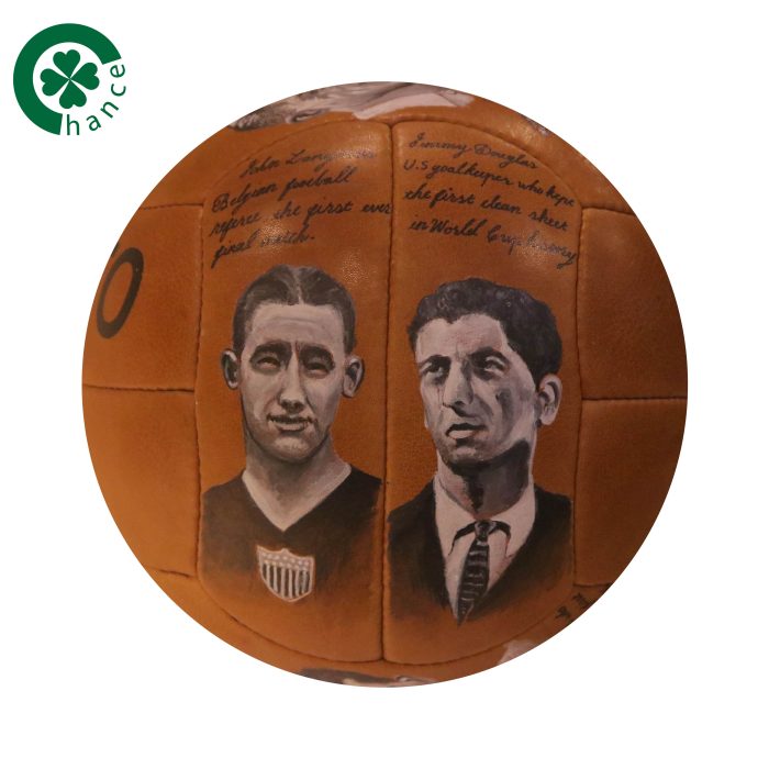 he 1950 John Woodbridge football is inspired by the design used during the 1950 Brazilian FIFA World Cup called “Duplo T” by Superball. This ball is handmade using traditional methods and is crafted from carefully chosen leather.